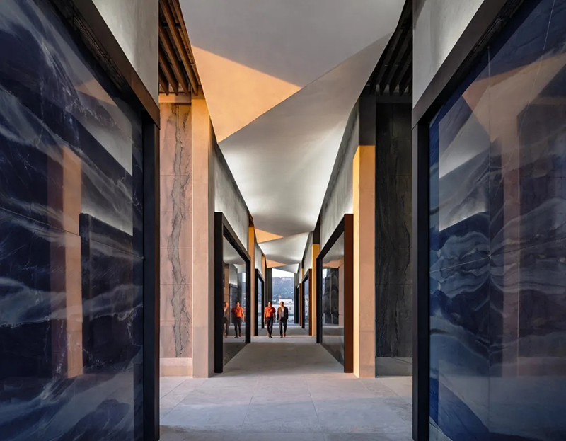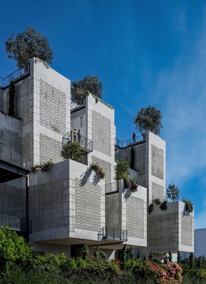 公墓分層設立的陽臺、庭院和梯田式花園從建筑向外延伸,提供眺望點、寬敞的座位以及一個適合沉思的空間。