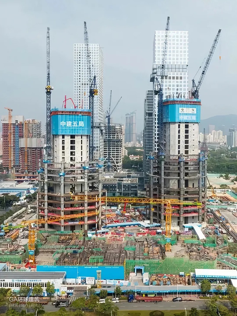C塔被稱為“未來之塔”,位于深圳市南山區深圳灣超級總部基地的“十字雙軸”中心,總投資約165億元,占地面積3.6萬平方米,由高約395米和300米的兩座摩天樓共同組成的一座多維度“垂直都市”,呈“雙人起舞”的形體。