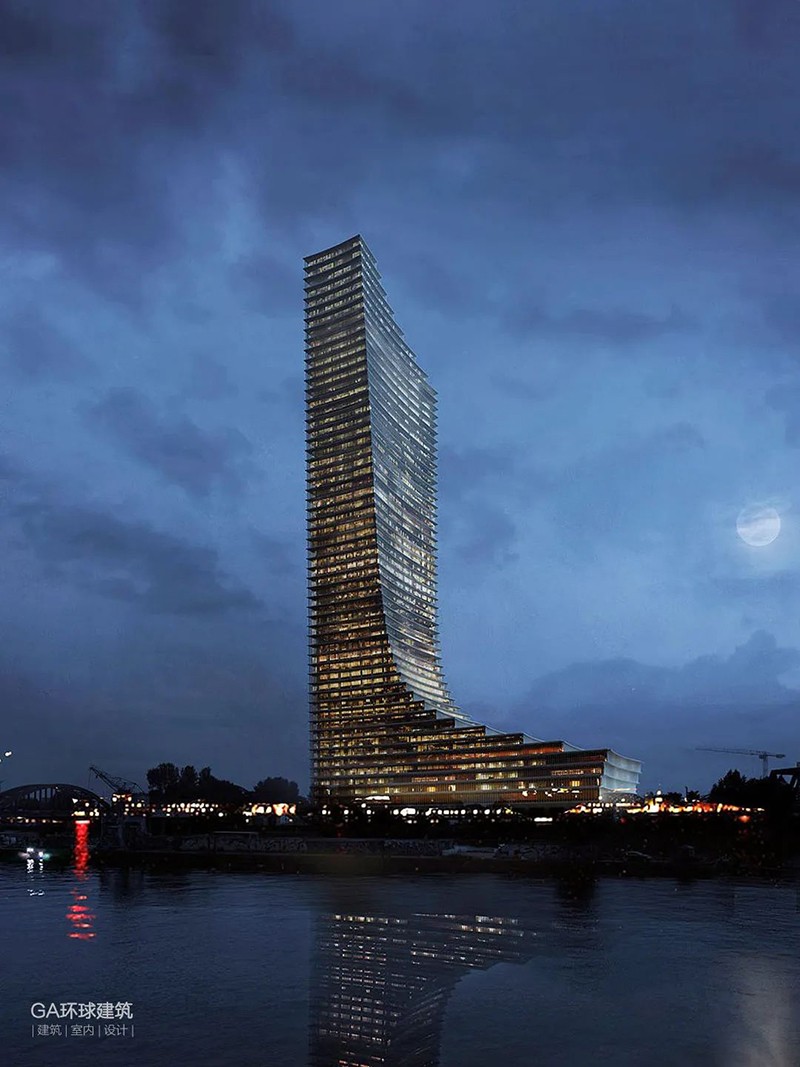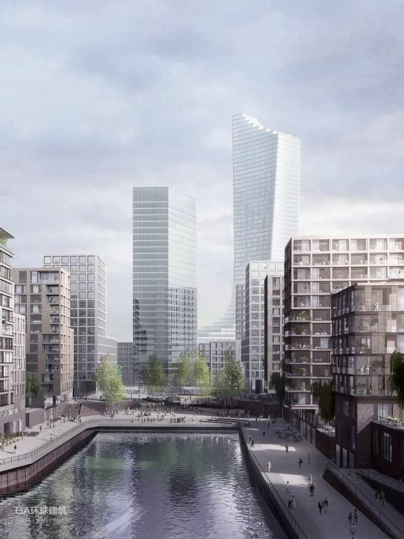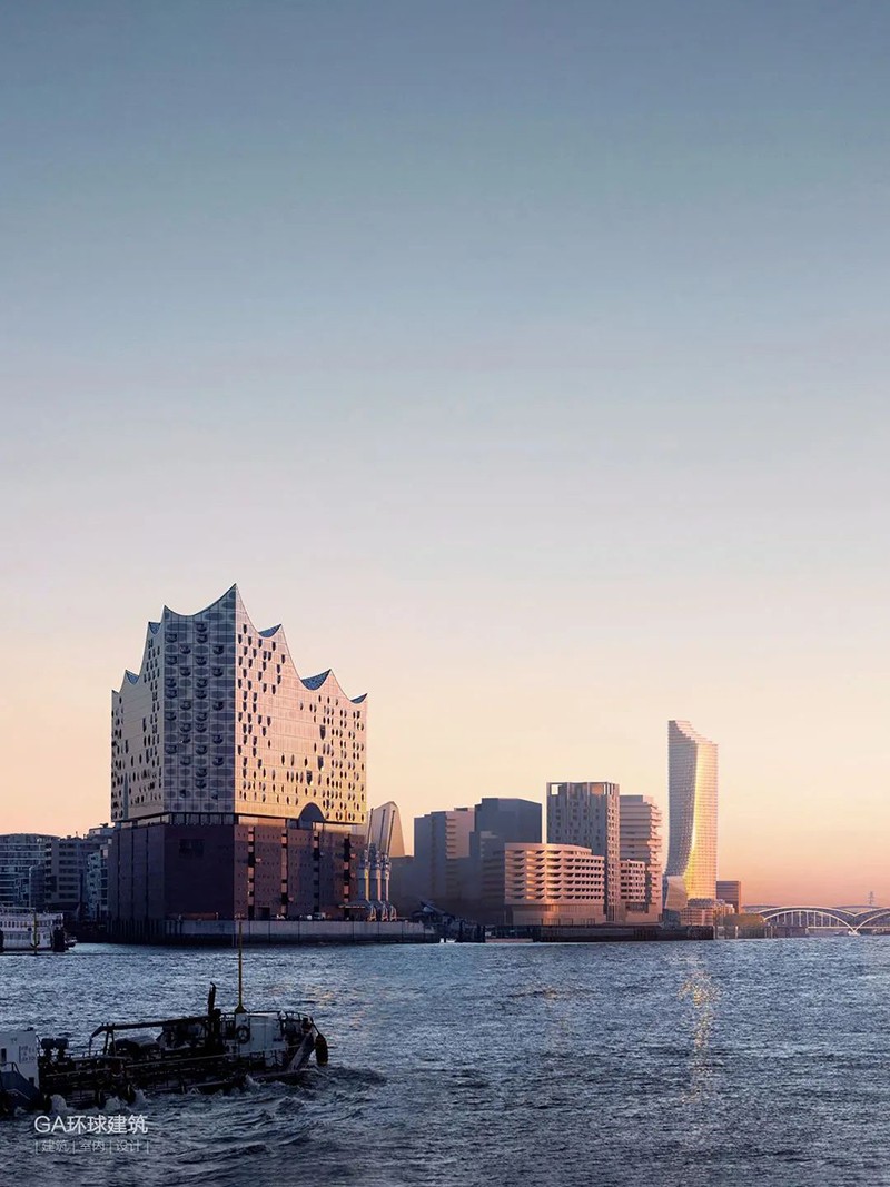 塔樓坐落于漢堡港城河畔,與易北愛樂廳遙相呼應,集辦公、零售、酒店及公共空間于一體。