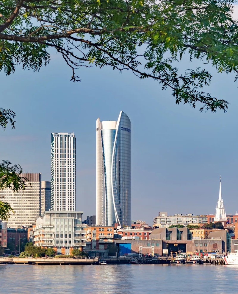 大廈高43層,其獨(dú)特的船帆造型向上逐級(jí)收攏,展現(xiàn)了現(xiàn)代建筑的簡(jiǎn)約美學(xué),且呼應(yīng)了波士頓作為歷史港口的航海基因。