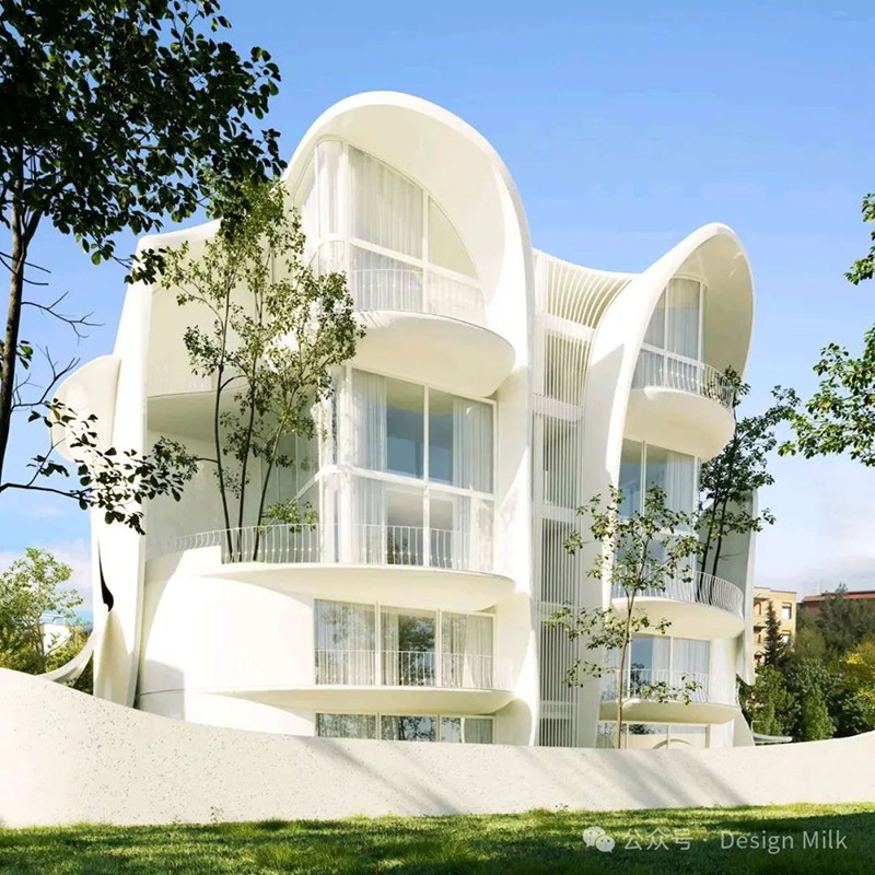 314 建筑工作室設(shè)計的新建筑以其雕塑形式和流暢的線條為特色,營造出一種運動和活力的感覺。 建筑的正面以流暢的曲線和有機形狀為特征,類似于巨大、飄逸的窗簾或時間凝固的波浪。 這些元素賦予建筑一種柔軟和流動的感覺,與城市建筑中常見的剛性線條形成鮮明對比。