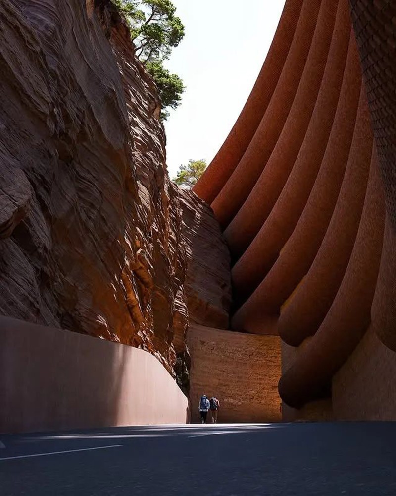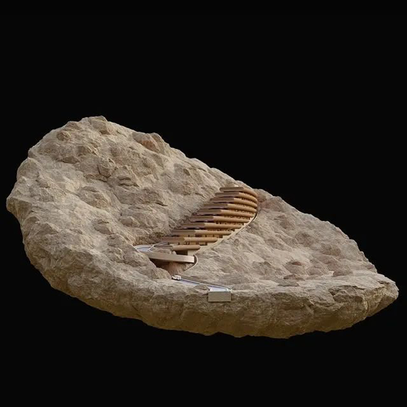 一座向上攀升的建筑。彎曲的樓板與山勢相呼應。并非為了引人注目,而是為了靜靜地融入其中。